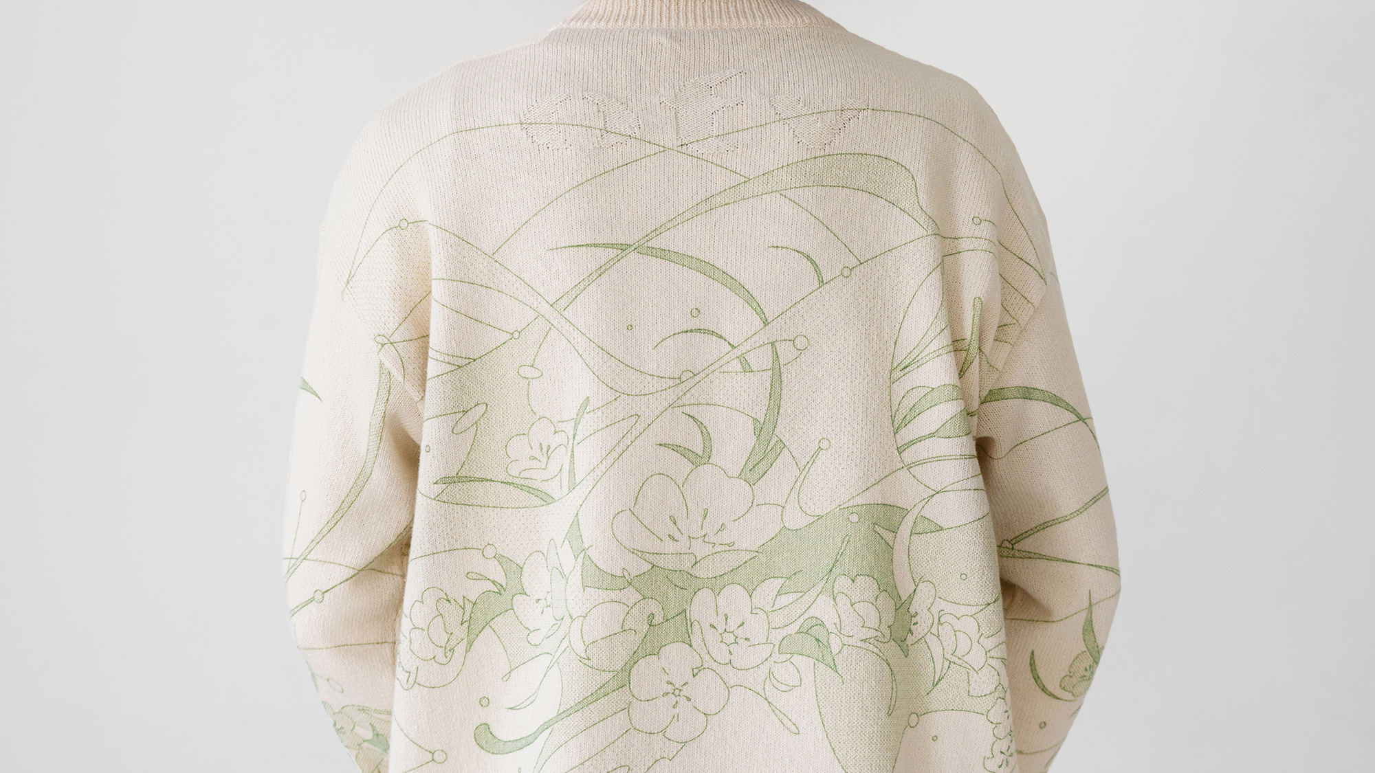 A luxe statement knit sweater that still has everyday comfort and appeal. In honor of Frieren: Beyond Journey's End Seasons 1's unique ED visuals, this piece uses beautiful screen printed linework of multiple Frierens entangled in magic and Blue-Moon Weed florals. Where timeless storytelling meets everyday style.